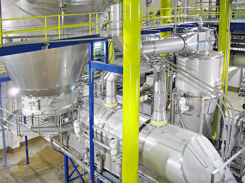 大型上排風(fēng)多級(jí)流化床噴霧干燥機(jī)的三部位照片.