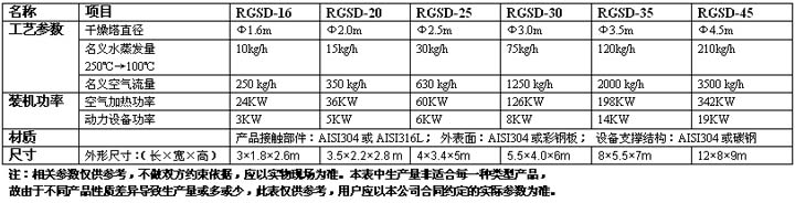 RGSD系列離心造粒噴霧干燥機(jī)技術(shù)參數(shù)表: